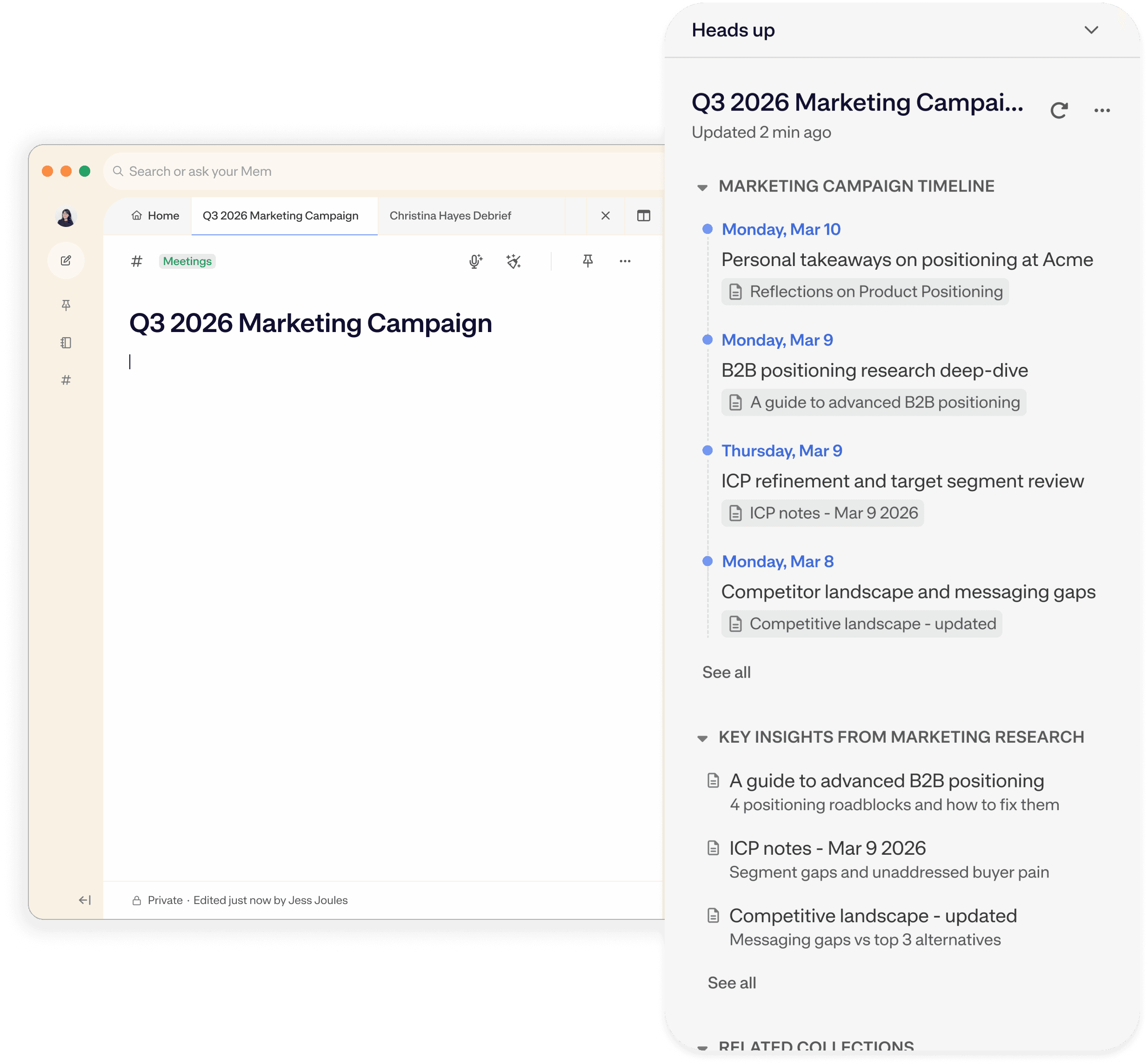 Mem turns the web into your personal knowledge base — capturing, organizing, connecting, and synthesizing everything you find, so it's ready when you need it.